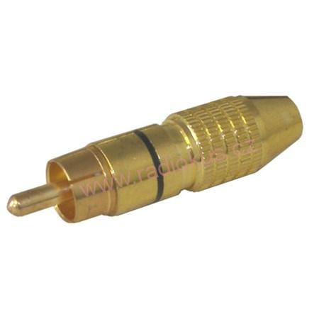 - CINCH vidlice pr.6mm, kabelová , přímá , kovová , zlatá , černý proužek