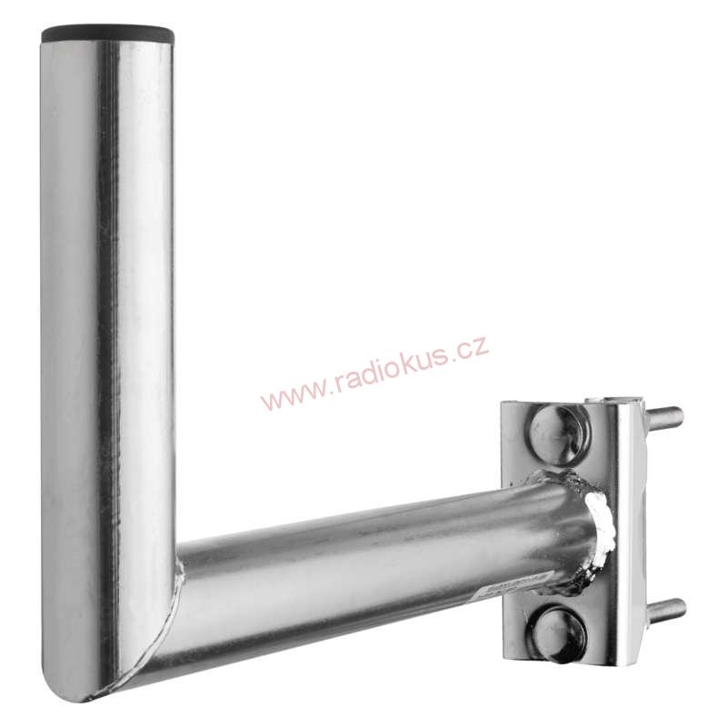 Univerzální držák antén Pro instalaci na stožár. Průměr trubky je 40 mm, výška 150 mm a délka od základny (zdi) je 350 mm. Držák je povrchově upraven galvanickým zinkováním.