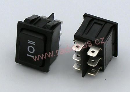 - Kolébkový spínač 10A / 250V , černý , 24 x 31 mm , s mezipolohou bez aretace