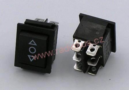 - Kolébkový spínač 10A / 250V , černý , 25 x 31 mm , s mezipolohou bez aretace