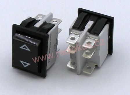 - Kolébkový spínač 10A / 250V , černý , 25 x 32 mm , s mezipolohou bez aretace