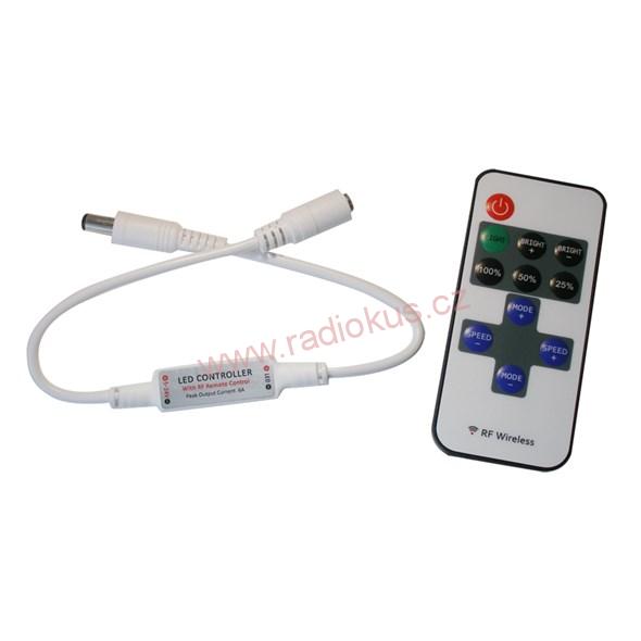 Bezdrátový RF (radiofrekvenční) ovladač pro jednobarevné LED pásky je ideální volbou pro ovládání LED pásku. Přijímač může být ukrytý (za zdí, sádrokartónem či ve skříni), není nutná přímá viditelnost přijímače pro ovladač. Velkou výhodou této MINI verze RF přijimače je velikost, která ješte více usnadňuje samotnou instalaci.