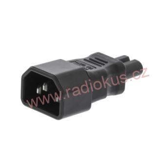 Přímý napájecí adaptér z IEC-320-C14 na IEC-320-C7. S tímto adaptérem můžete připojit IEC-320-C13 napájecí kabel k zařízením, která mají IEC-320-C8 připojení.