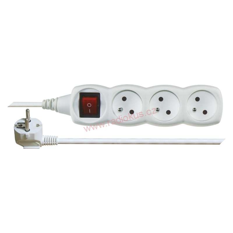- Prodlužovací kabel s vypínačem – 3 zásuvky, 5m, bílý
