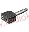 Redukce 2 x jack 3,5mm stereo zásuvka / jack 6,3mm stereo vidlice , přímáSkladem 17 ks30 Kč/ ks24,79 Kč bez DPH