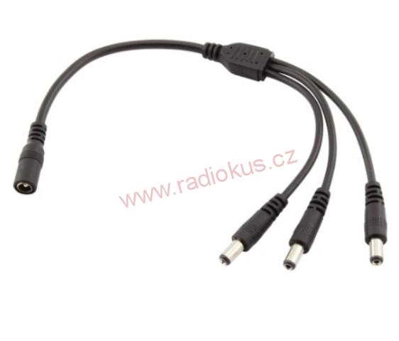 - Rozbočovací kabel Y s konektory DC 5,5 x 2,1mm, 1x zásuvka na 3x vidlice, černý
