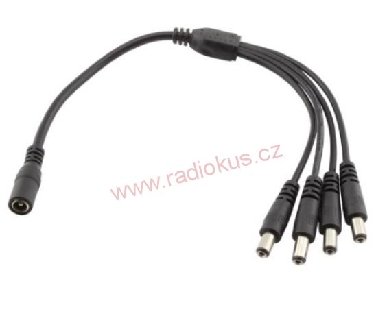 - Rozbočovací kabel Y s konektory DC 5,5 x 2,1mm, 1x zásuvka na 4x vidlice, černý