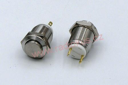 - Spínač tlačítkový OFF - ( ON ) bez aretace, kovový , 2A/36V , Antivandal provedení, mini , rovný hmatník