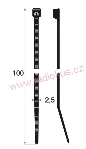 Stahovací pásek PVC 2,5 x 100 mm , černý