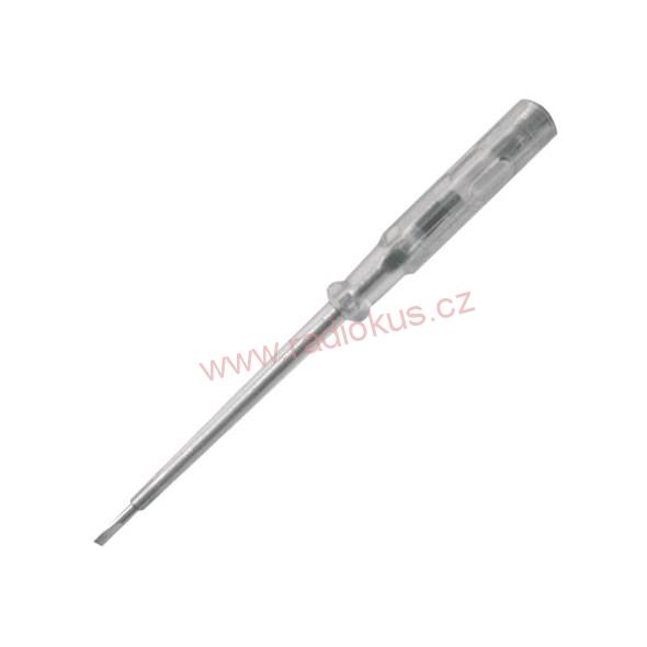 Šroubovák s délkou břitu 3.4 mm s doutnavkovou zkoušečkou do 250V. Celková délka 19 cm.