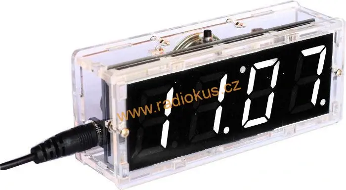 Stavebnice digitálních hodin s budíkem a teploměrem. Obsahuje LED displej s výškou svítící části segmentů 25mm. Osaze obvodem STC15W404ASSpecifikace:Režim zobrazení: čas 24h, teplota °CNapájení: 5V/200mA (USB kabel)Zálohování: baterie CR1220Budík s pi...