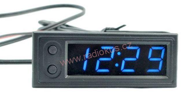 Digitální teploměr, hodiny, voltmetr panelový 3v1, 12V, modrý