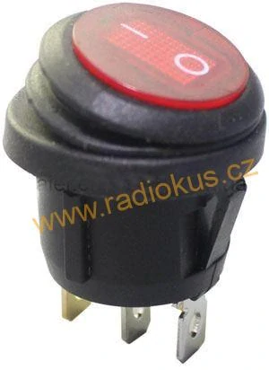 - Kolébkový spínač 6A / 250V , červený , 24 mm , s gumovou krytkou , aretovaný