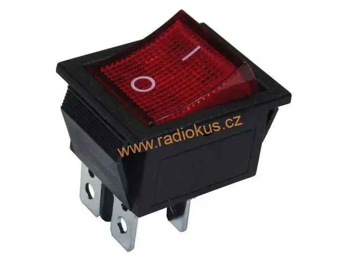 - Kolébkový spínač ON - OFF 16A / 250V , červený , aretovaný , 31 x 25,3 mm