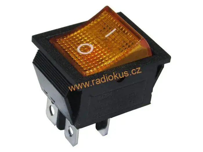 - Kolébkový spínač ON - OFF 16A / 250V , oranžový , aretovaný , 31 x 25,3 mm