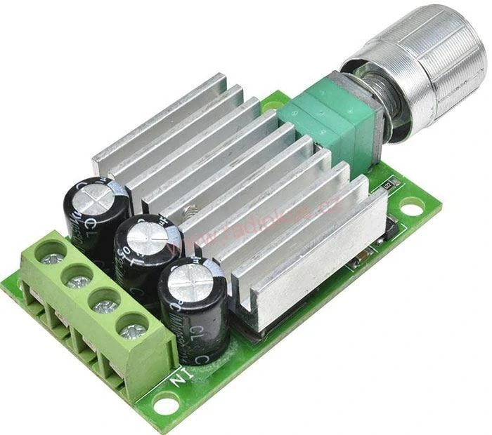 Impulsní PWM regulátor pro DC motory nebo LED světla a pásky. Bez zpětné vazby pro kontrolu nastavených otáček.