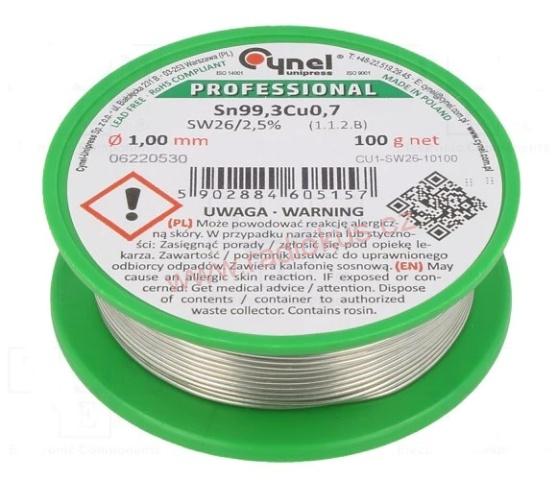 Měkká pájka bezolovnatá 100g průměr 3mmNení skladem330 Kč/ ks272,73 Kč bez DPH