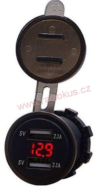 Napájecí zdířka 2xUSB 5V/2,1A s voltmetrem