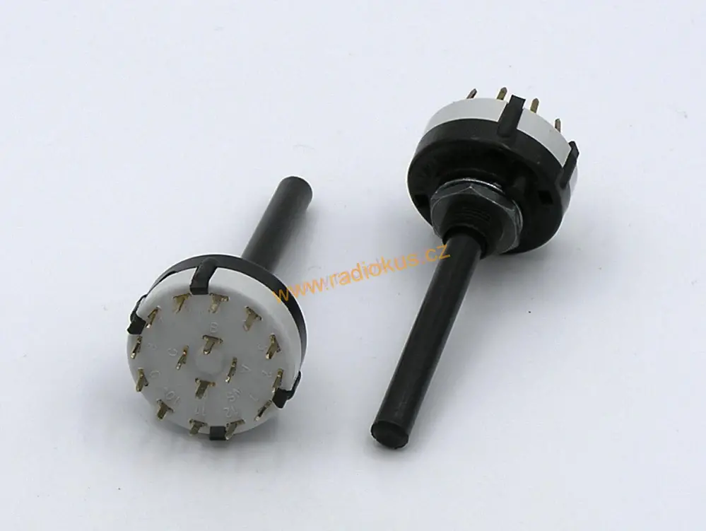 Otočný přepínač 4x3 poloh , 0,3A/125V AC, 1A/30V DCSkladem 15 ks80 Kč/ ks66,12 Kč bez DPH