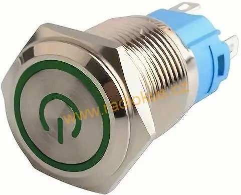 Přepínač tlačítkový ON - ON s aretací , 22mm, 250V/2A, zelené prosvětlení 12-24VSkladem 9 ks75 Kč/ ks61,98 Kč bez DPH