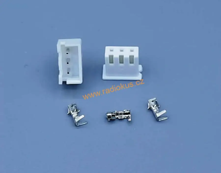 - Sada JST-XH 3pin rastr 2,54mm vidlice do DPS + zásuvka na kabel