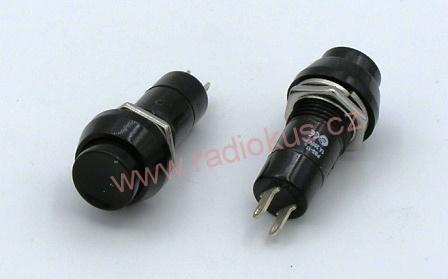 Spínač tlačítkový OFF - ( ON ) bez aretace, černý kulatý , 1A/250VSkladem 40 ks20 Kč/ ks16,53 Kč bez DPH