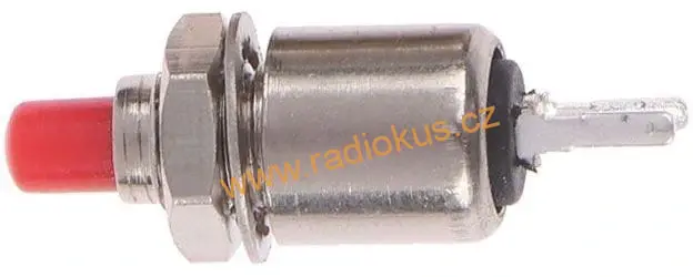 Spínač tlačítkový OFF - ( ON ) bez aretace , červený , 0,5A/250V , kovSkladem 9 ks45 Kč/ ks37,19 Kč bez DPH