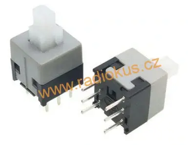 - Spínač tlačítkový ON - ON , 0,5A/12V , do DPS s aretací , 8,5x8,5x8,5mm