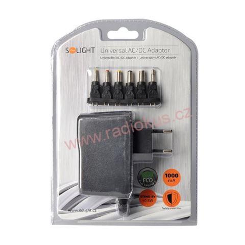 - Univerzální síťový adaptér 3-12V/1000mA, stabilizovaný, výměnné konektory