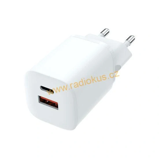 USB-C + USB-A 33W QC PD GaN rychlonabíječka s vysokým výkonem pro rychlé nabíjení. Vstup: AC 110-240V, 50/60Hz. Výstup USB-C: 5V 3A, 9V 3A, 12V 2.5A, 15V 2A, 20V 1.5A (PD 30W), PPS: 3.3-11V 3A, 11-16V 2A. Výstup USB-A: 5V 3A, 9V 2A, 12V 1.5A. Při použití obou výstupů: 5V 3A. Barva: bílá. Kompaktní a efektivní nabíječka pro rychlé a bezpečné nabíjení.